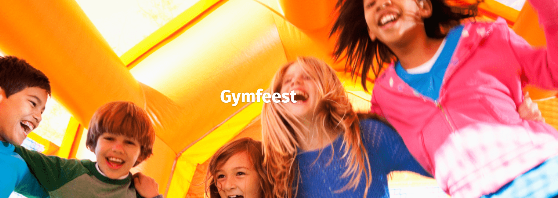 Gymfeest in de gymzaal. Verschillende mogelijkheden: lasergamen, archery tag, apenkooien en nog veel meer.