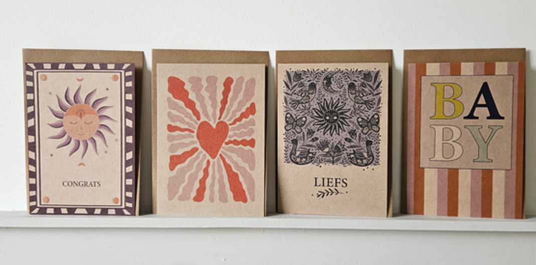 Daarnaast ontvang je een set van 5 enkelzijdige wenskaarten inclusief enveloppen. Altijd handig om in huis te hebben