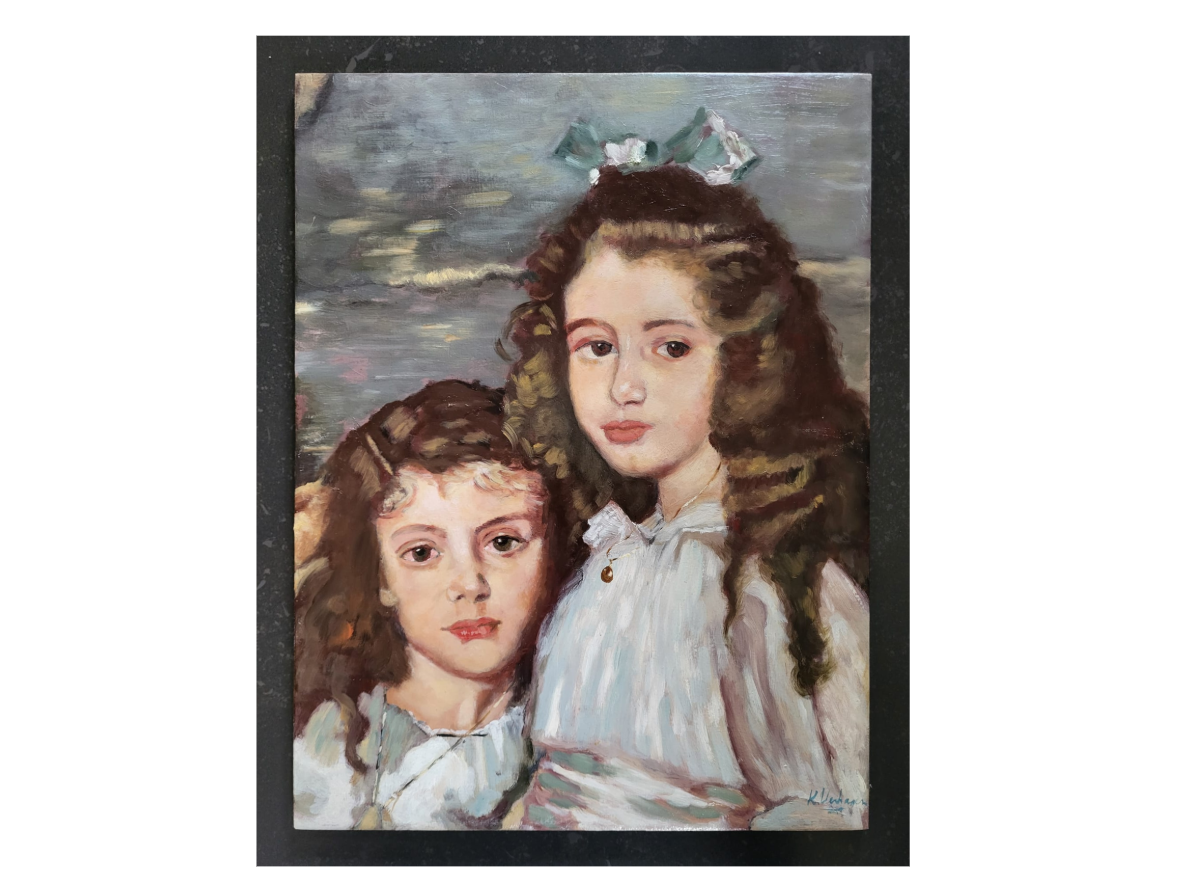 Een leuk en lief schilderij van 2 zusjes, replica van de schilderes Therese Swartze