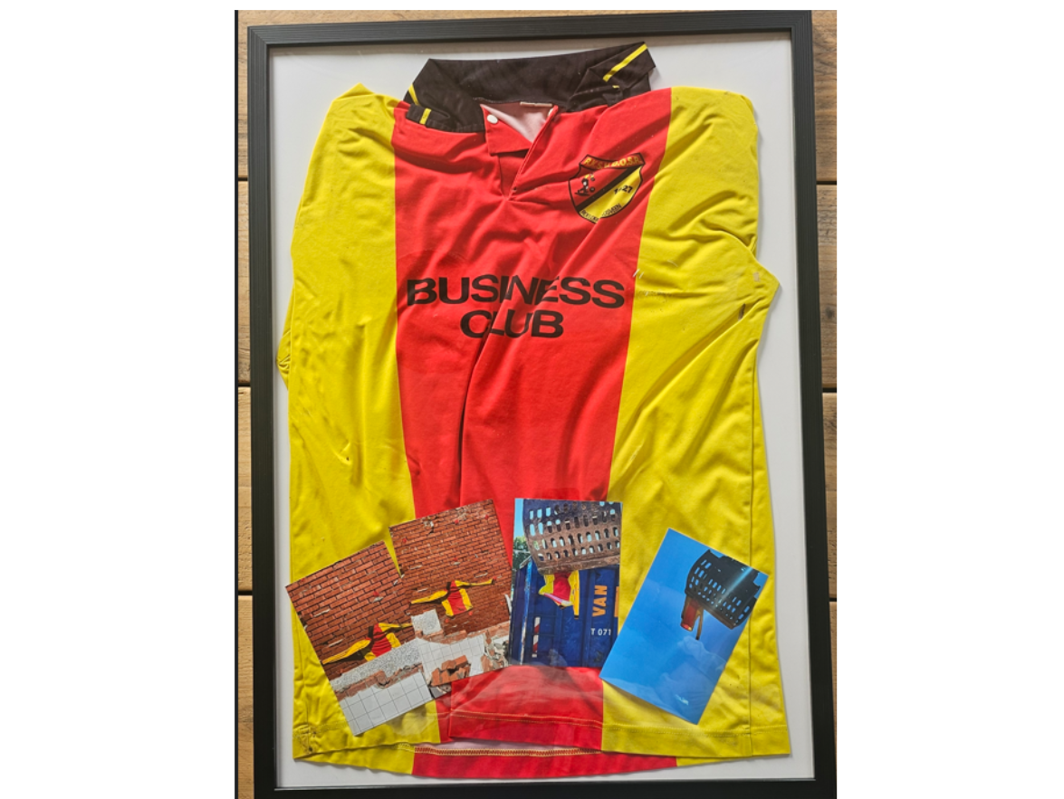 Een vondst die tot de verbeelding spreekt: dit originele DOSR-shirt werd ooit verstopt en pas vele jaren later ontdekt, ingemetseld in de muur van de kleedkamers van Alkmania (later W.V.C.).